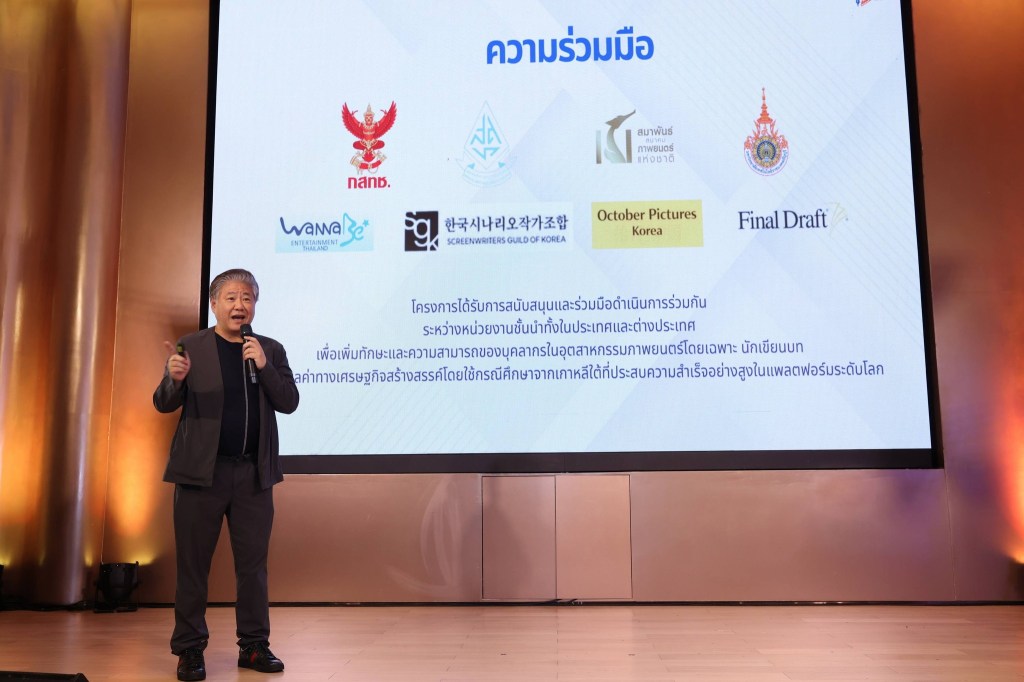 ด้าน คุณพรชัย ว่องศรีอุดมพร เลขาธิการสมาพันธ์สมาคมภาพยนตร์แห่งชาติ กล่าวว่า โครงการนี้สอดคล้องกับนโยบายภาครัฐที่สนับสนุนอุตสาหกรรมภาพยนตร์และซีรีส์ไทย ผ่านการลงทุนด้าน Research, Development และ Training ซึ่งถือเป็นรากฐานสำคัญในการสร้างบุคลากรรุ่นใหม่ และต่อยอดศักยภาพนักเขียนในอุตสาหกรรมเดิมให้มีมุมมองที่หลากหลายและร่วมสมัยมากยิ่งขึ้น การถ่ายทอดองค์ความรู้จากผู้เชี่ยวชาญต่างประเทศจะช่วยให้คอนเทนต์ไทยมีคุณภาพ แข็งแรง และสามารถสื่อสารกับตลาดโลกได้อย่างมีประสิทธิภาพ